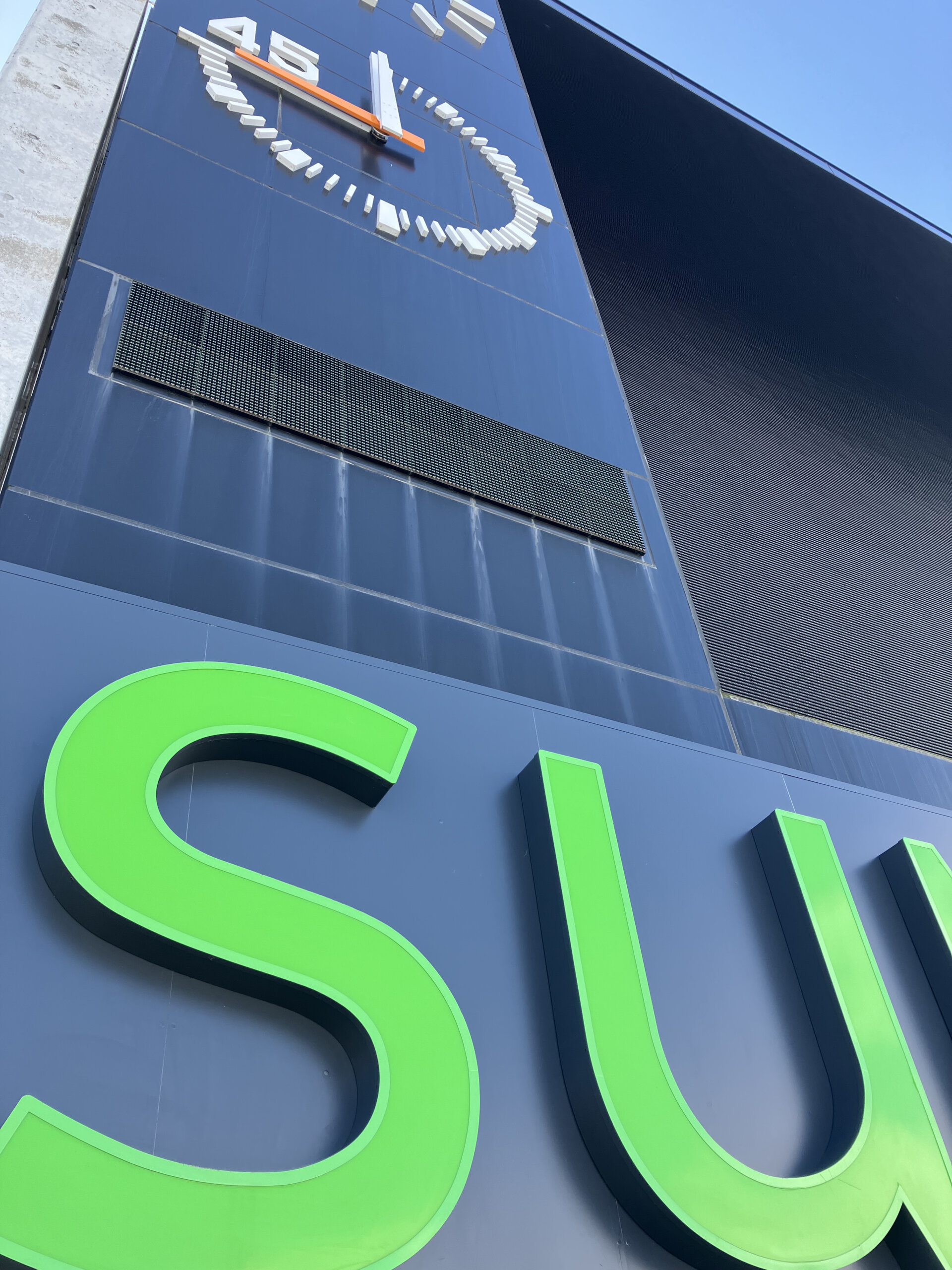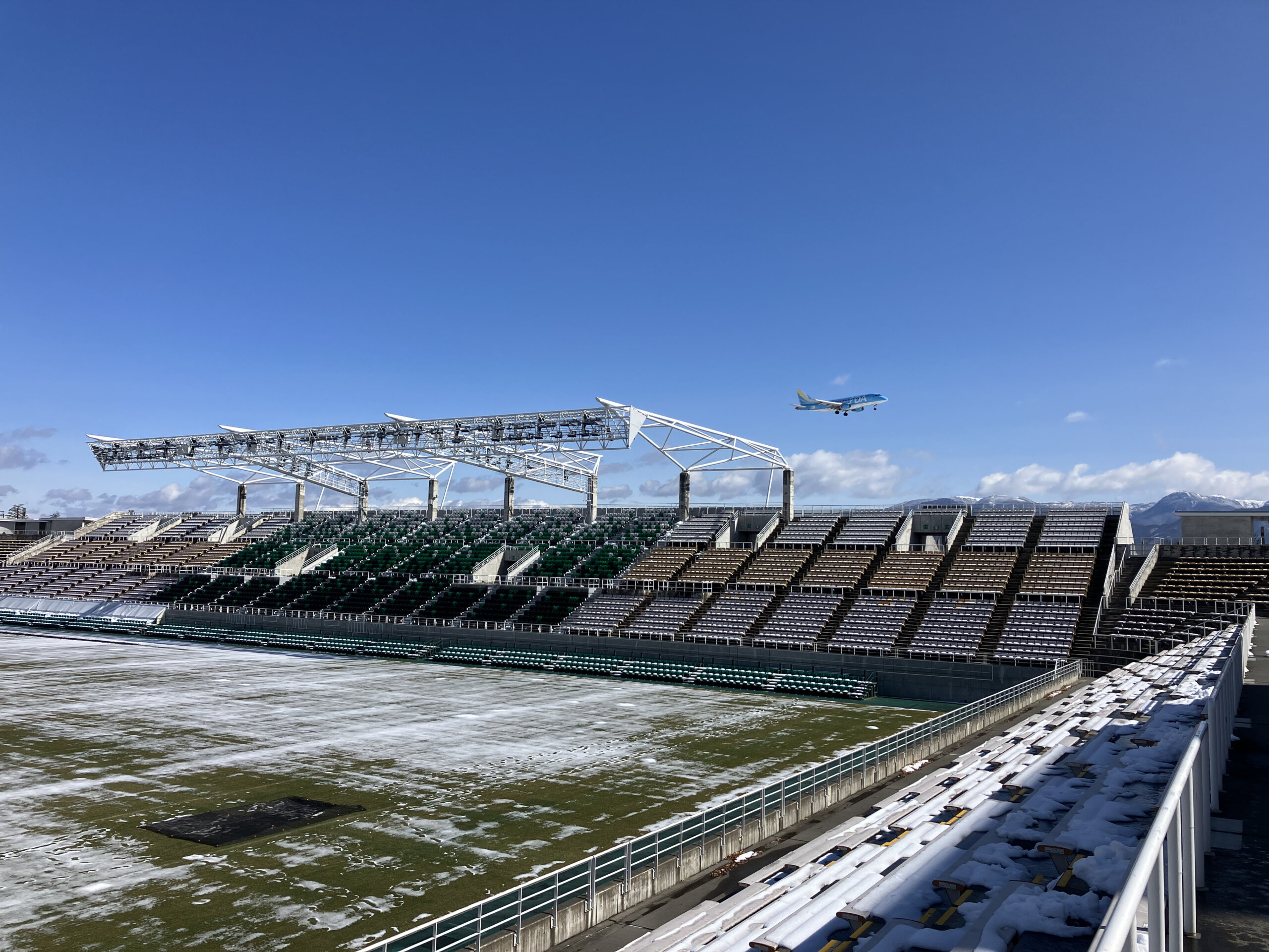 つい先日、サンプロがネーミングライツ(命名権)を持つスタジアム「サンプロアルウィン」の看板メンテナンスに行ってきました。