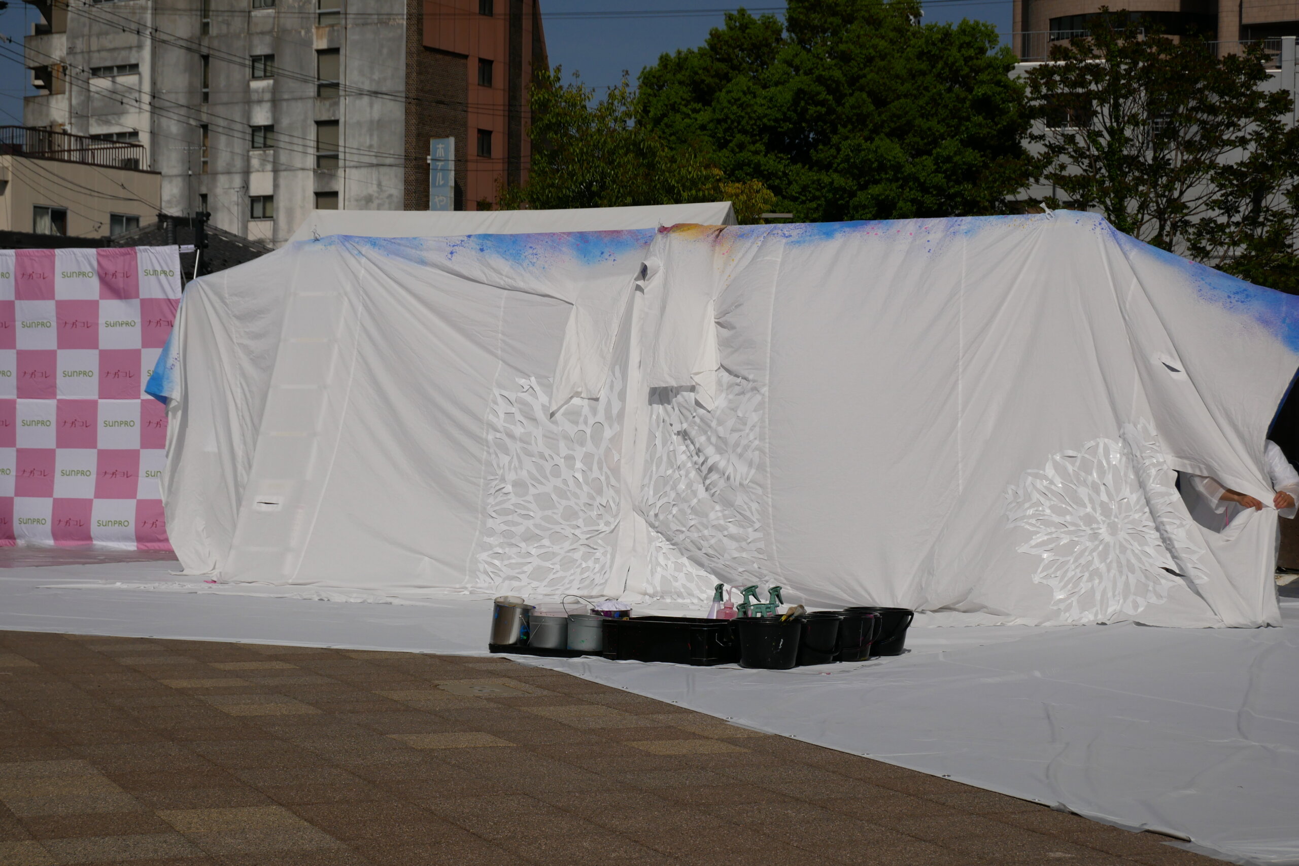 運営メンバー総員で、広範囲にわたって養生を行います。