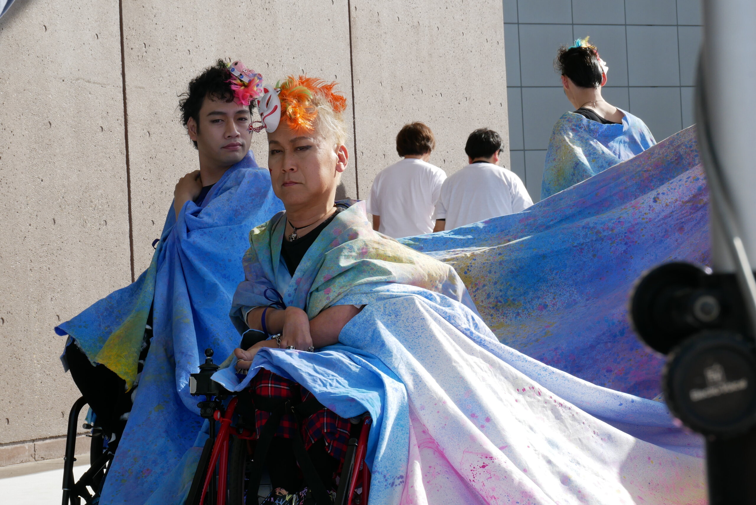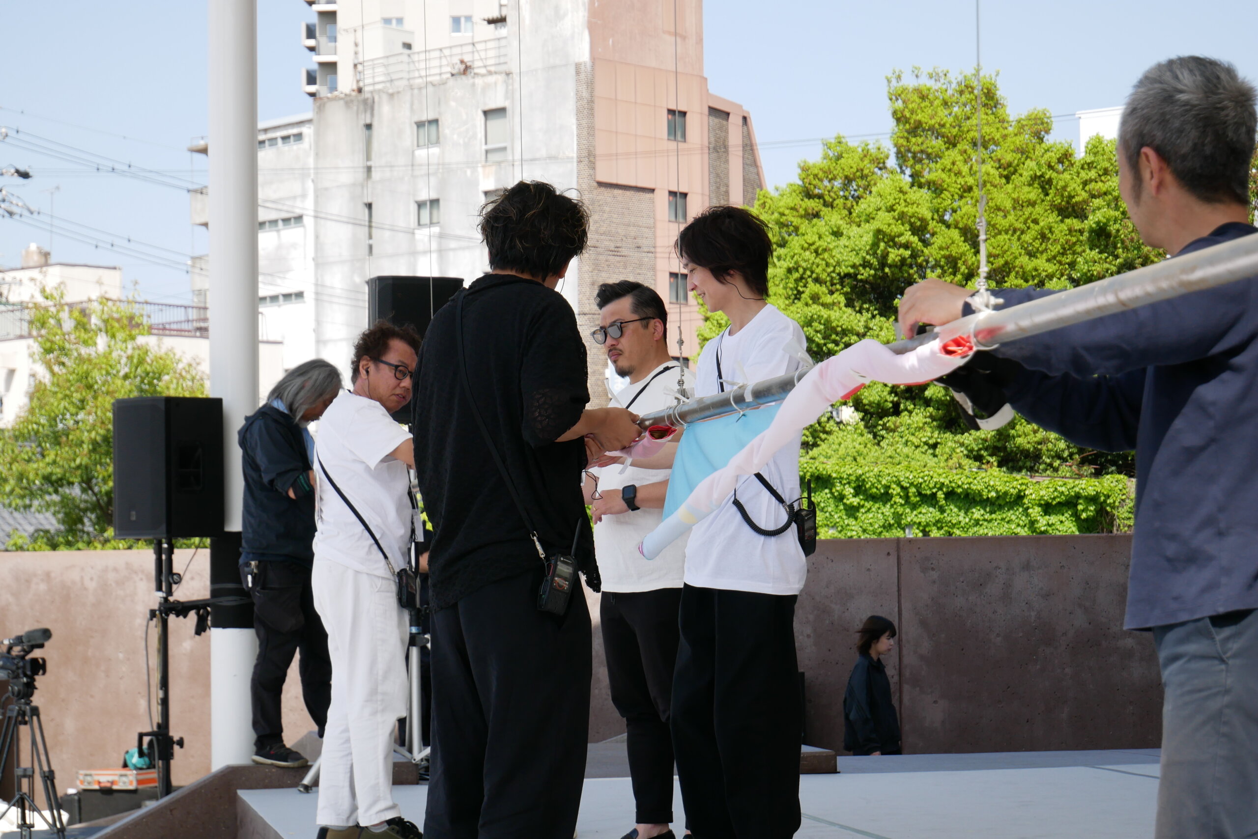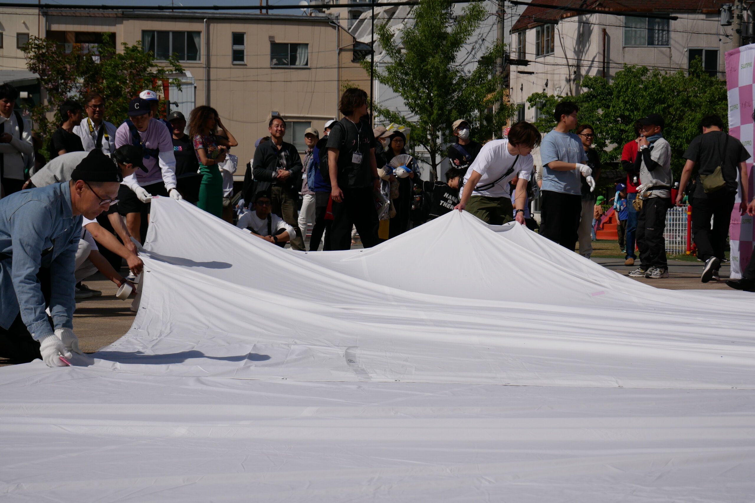 6m四方の大型衣装のため、鶴田さんを先頭に、