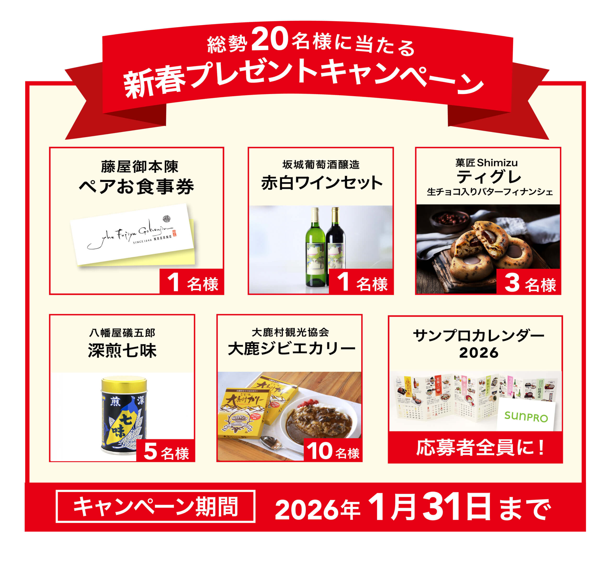 2026年1月31日 23:59までにご応募いただいた方の中から抽選で豪華景品をプレゼント!