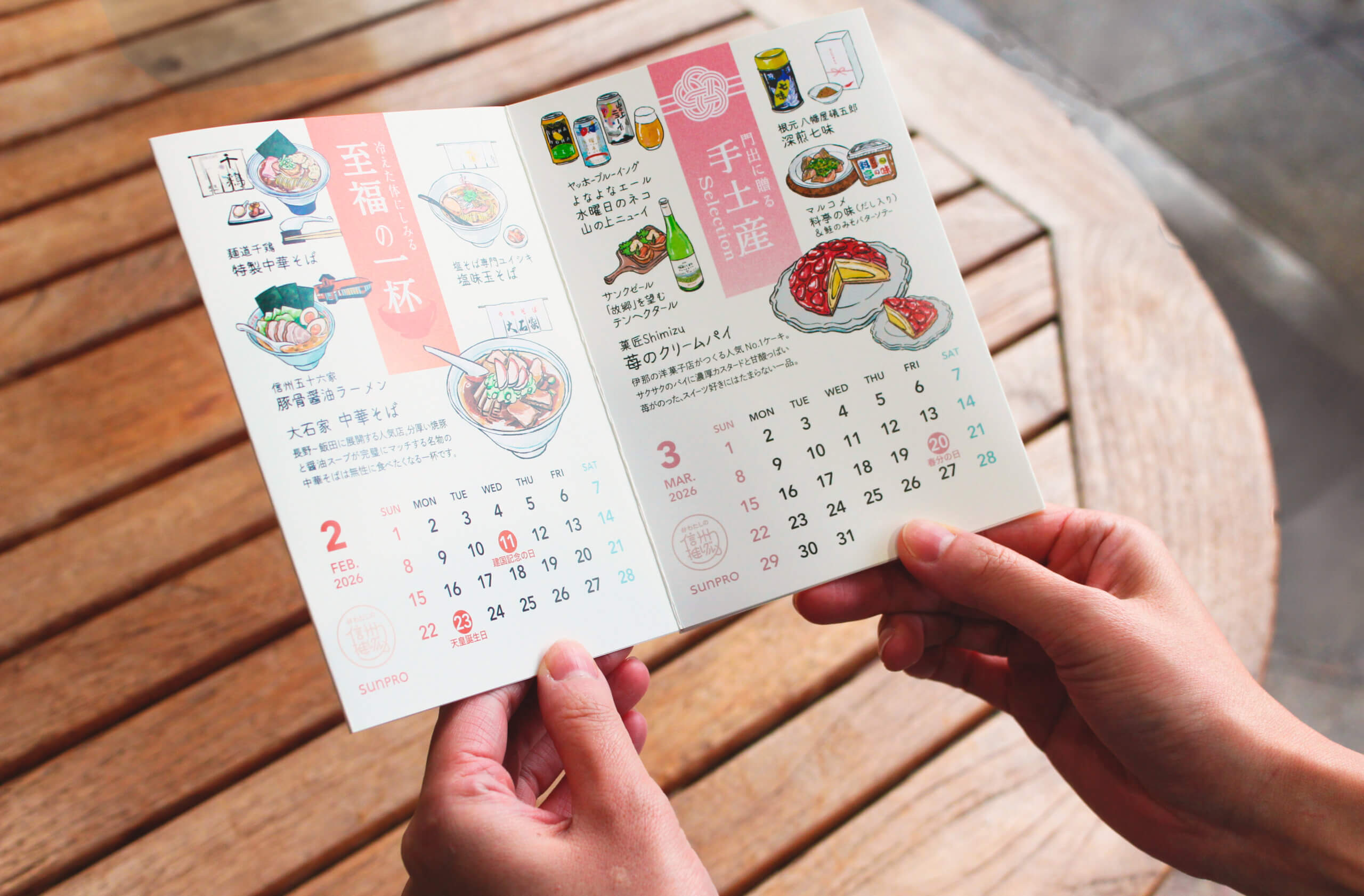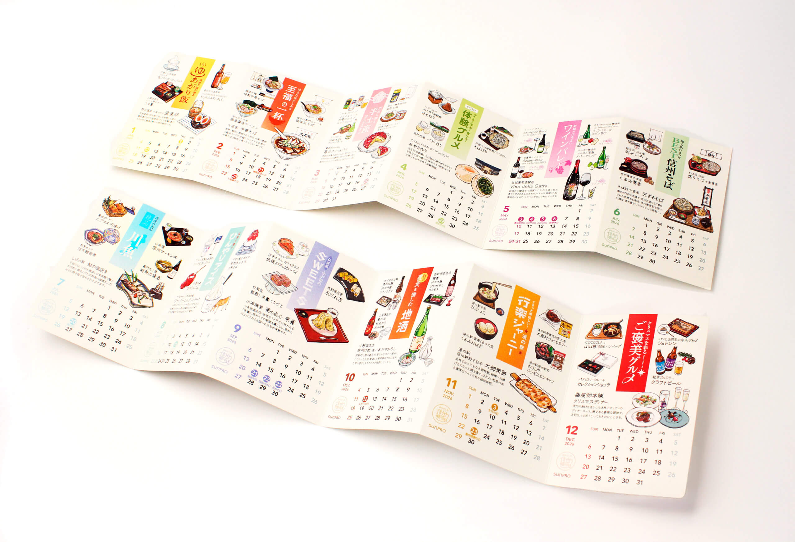 「今月はどこに、何を食べに行こう」と、毎月考えるのが楽しみになる、そんなカレンダーになっています!